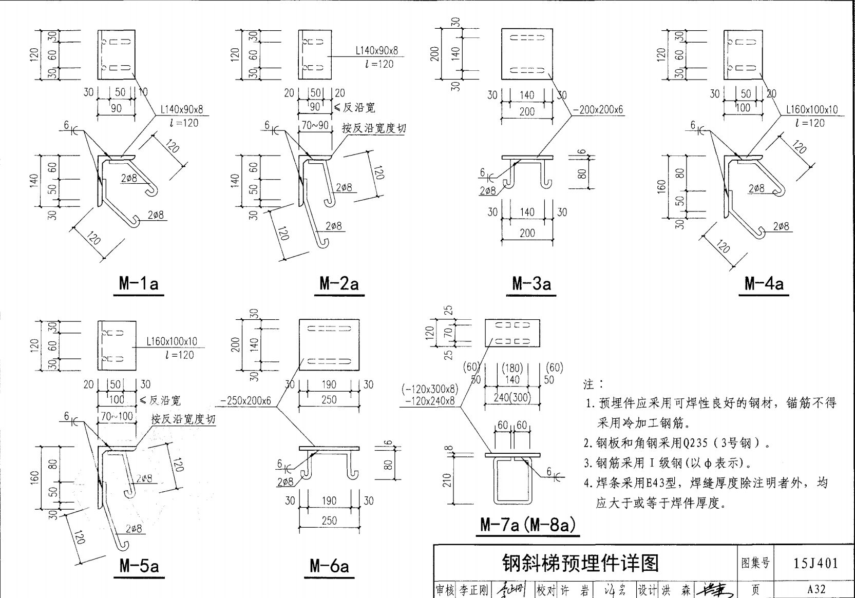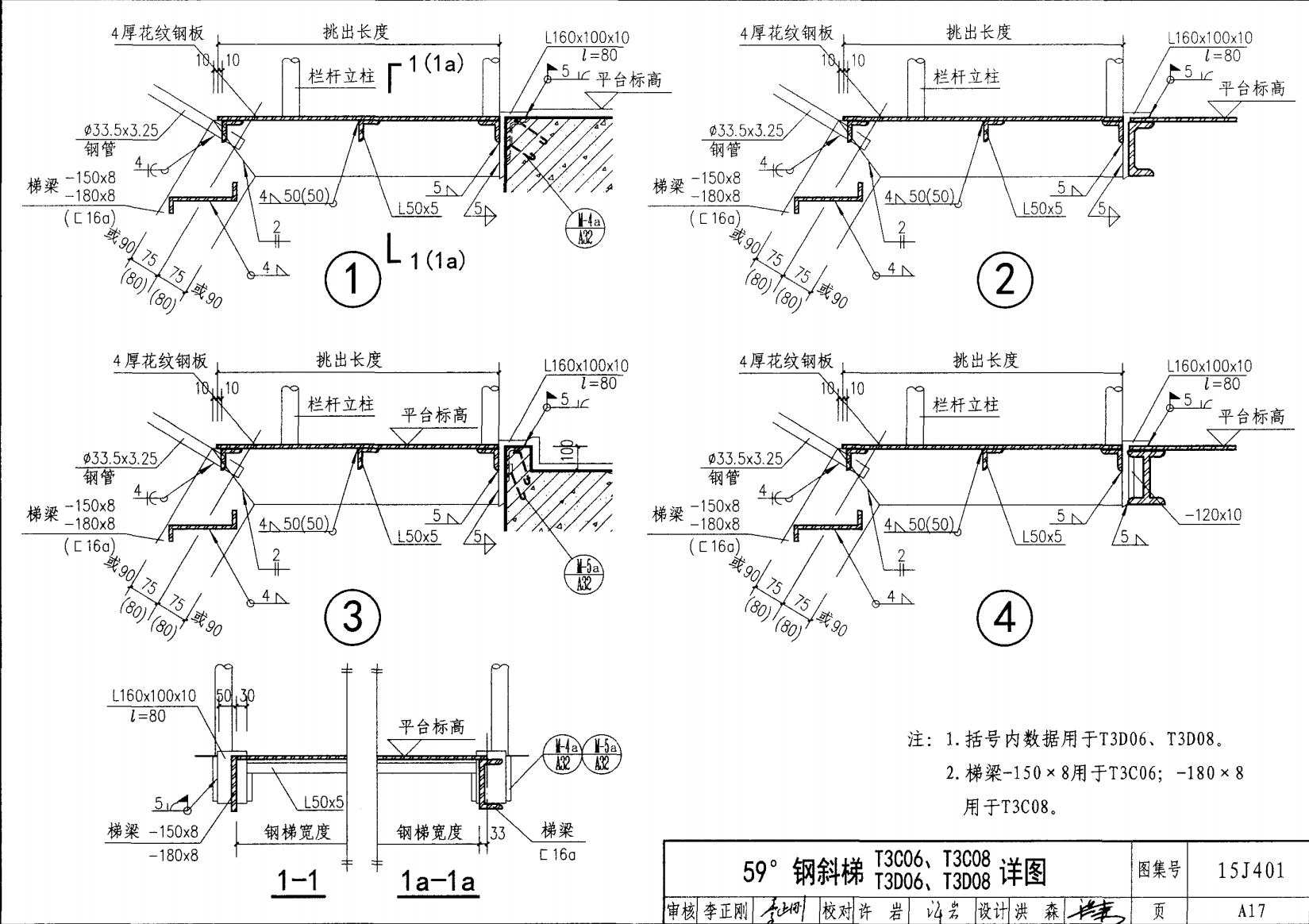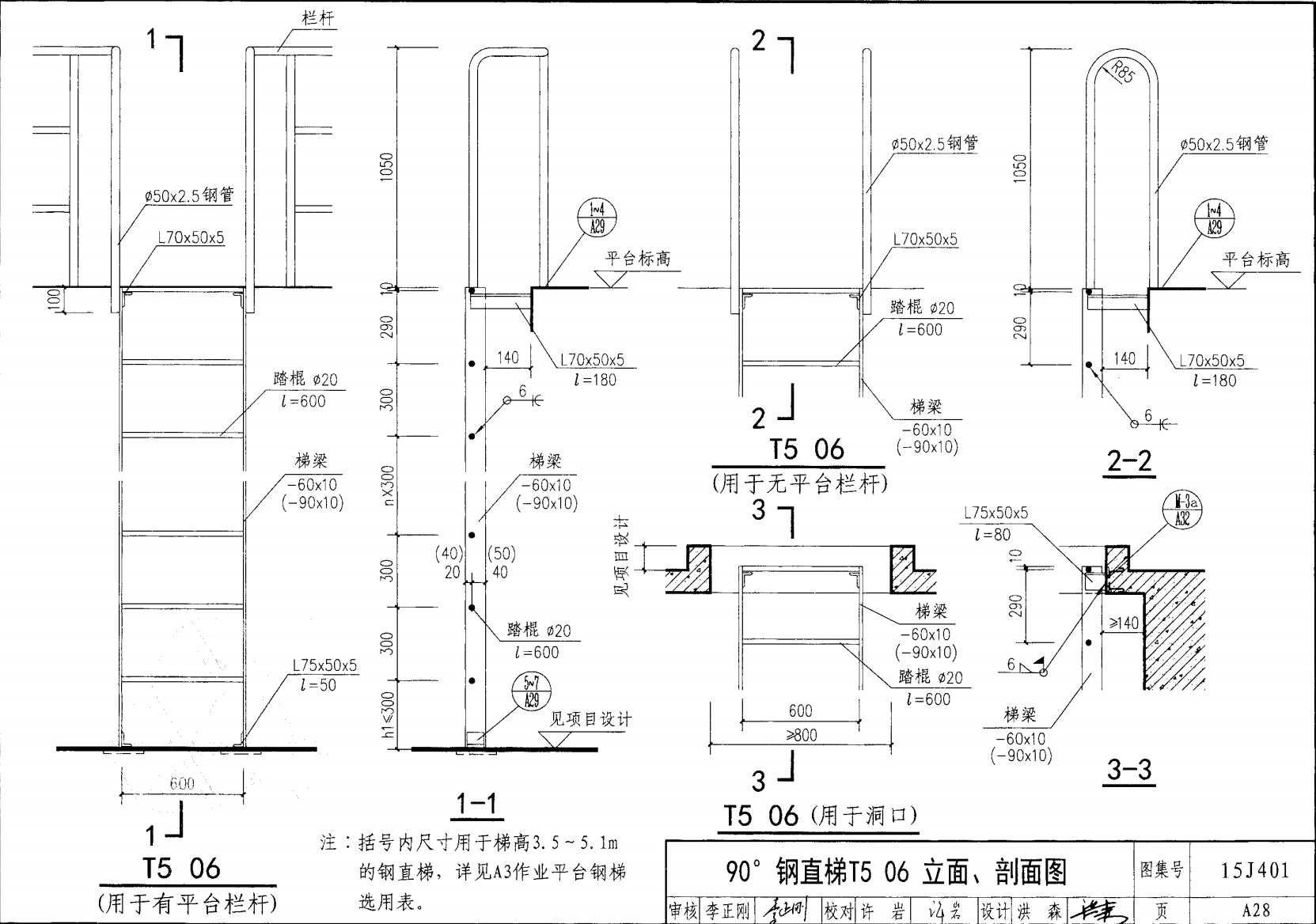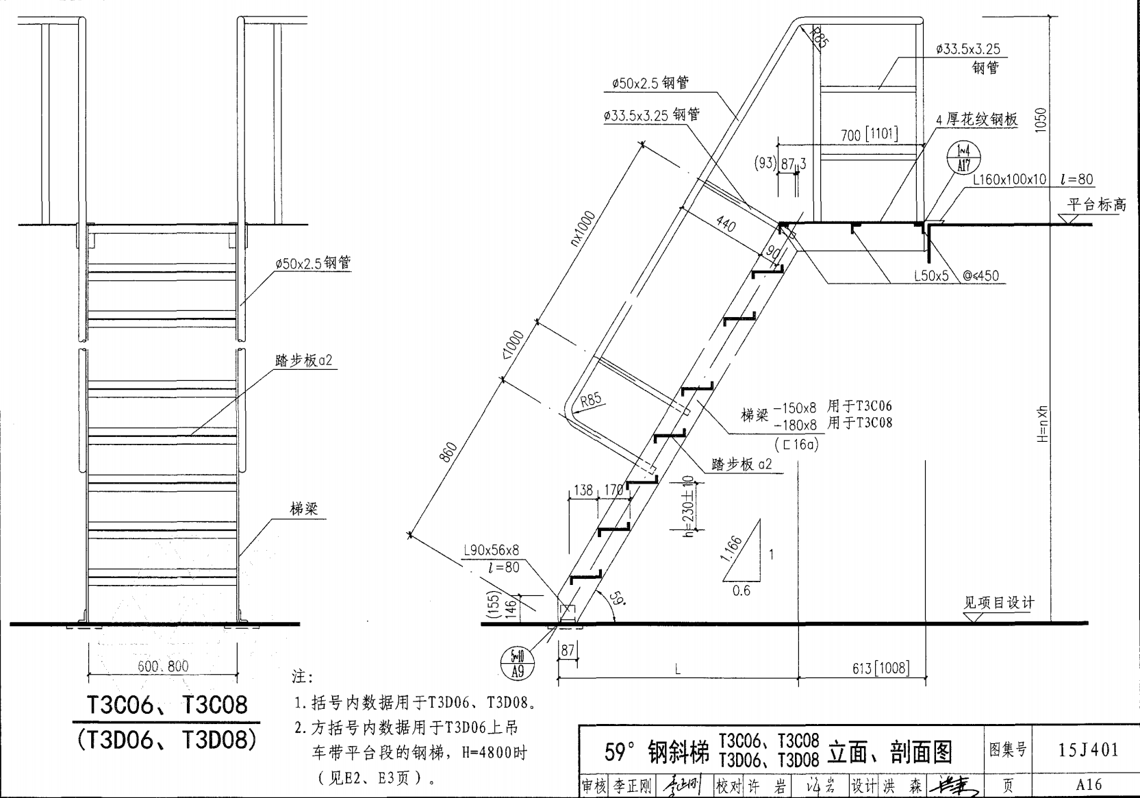 - T3A06a-2.8其中T3為斜角59°鋼梯,A鋼板梯梁,06a梯寬600mm,a型踏步板,梯高2.8m