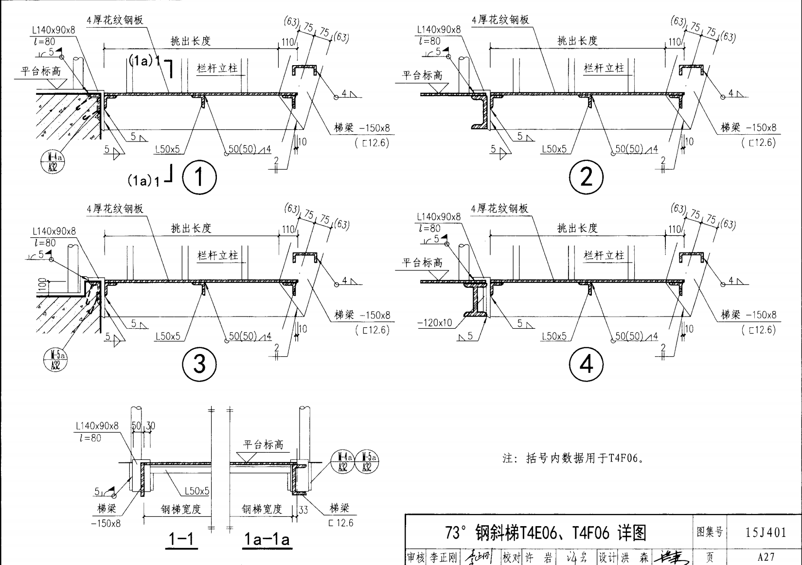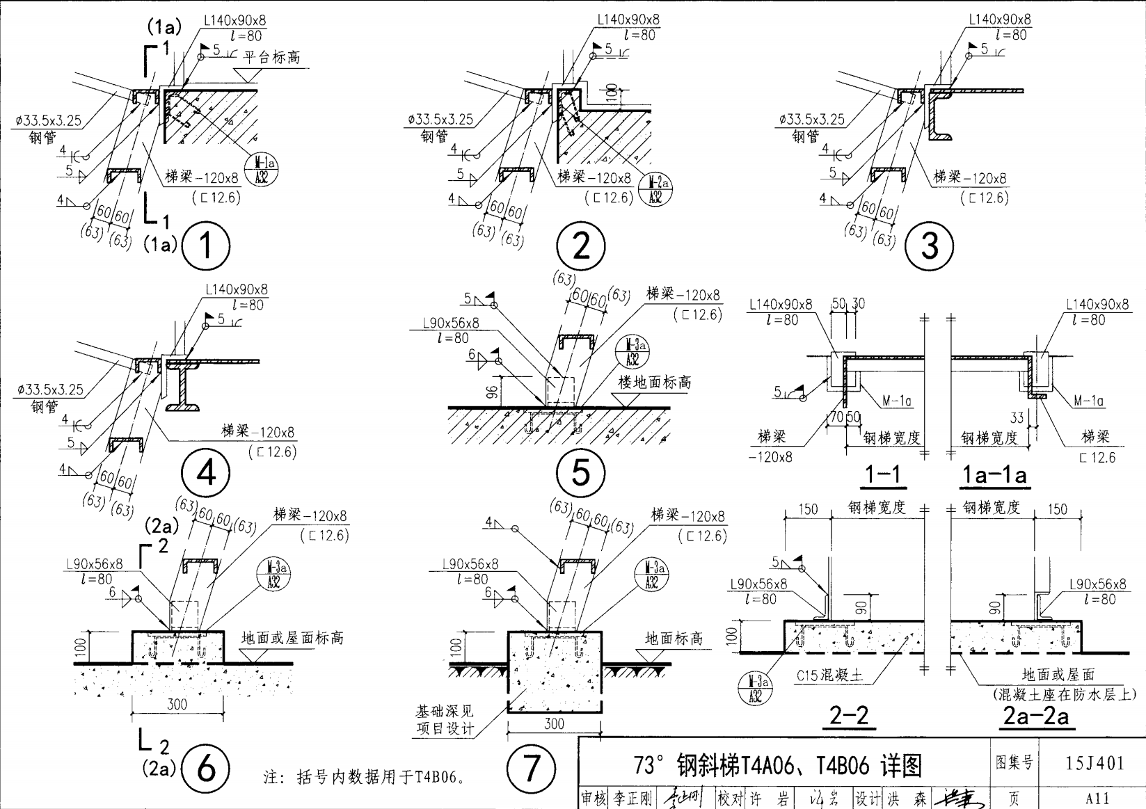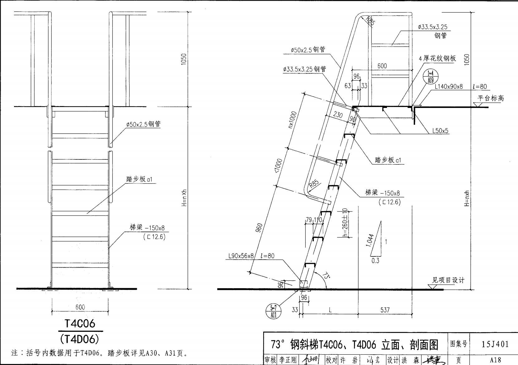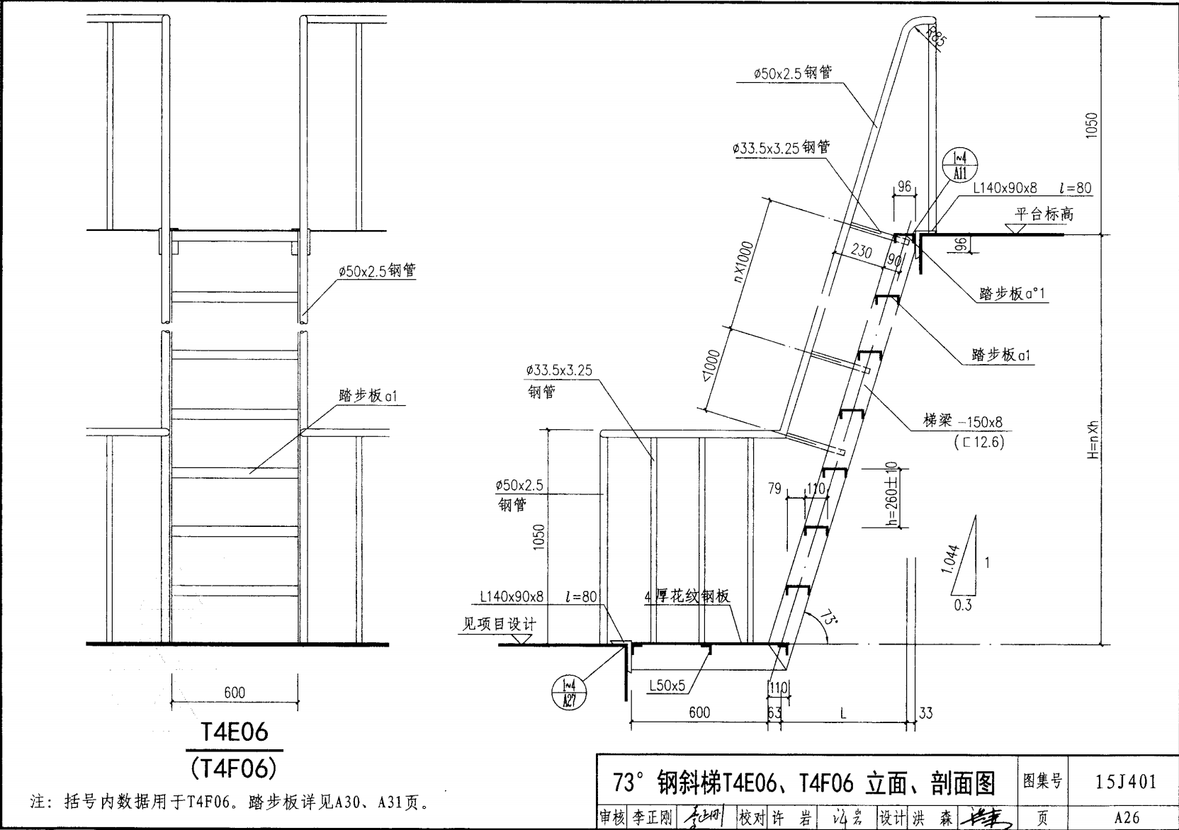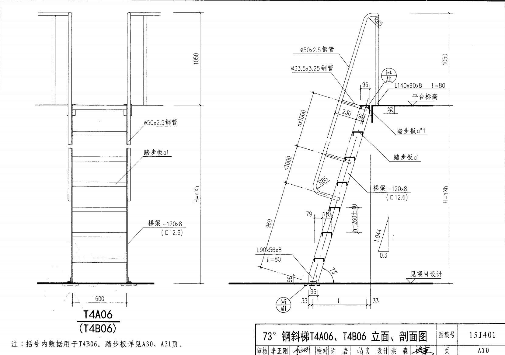 鋼斜梯A | 73°(1:0.3) | T4A06 | 600 | -120X8 | 4.80 | a~c |