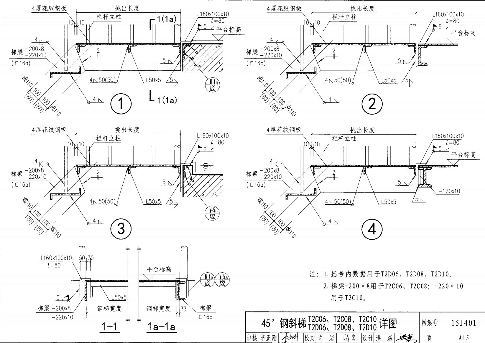 鋼斜梯D | 45°(1:1) | T2D10 | 1000 | 〔16a | 4.50 | a~c |