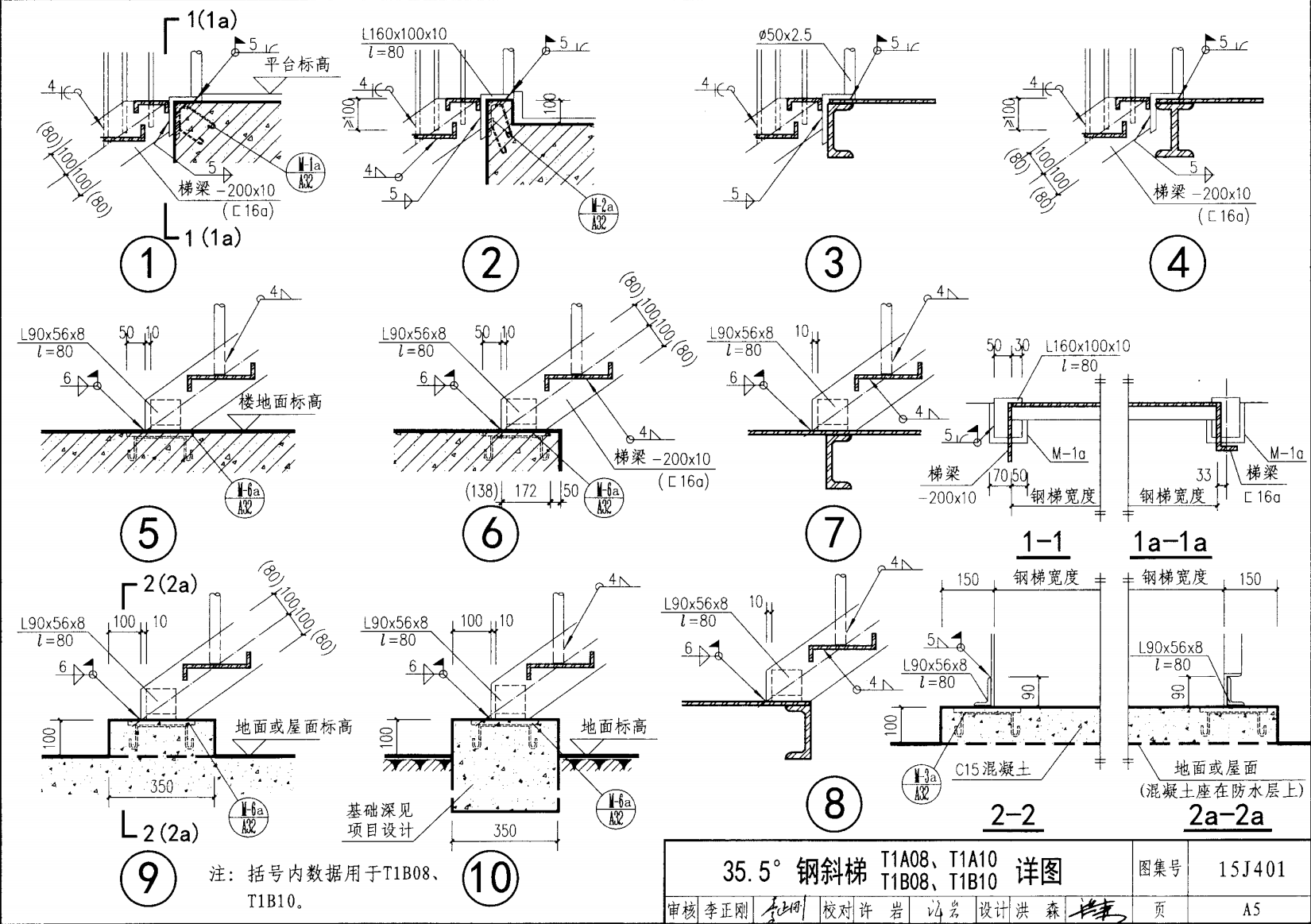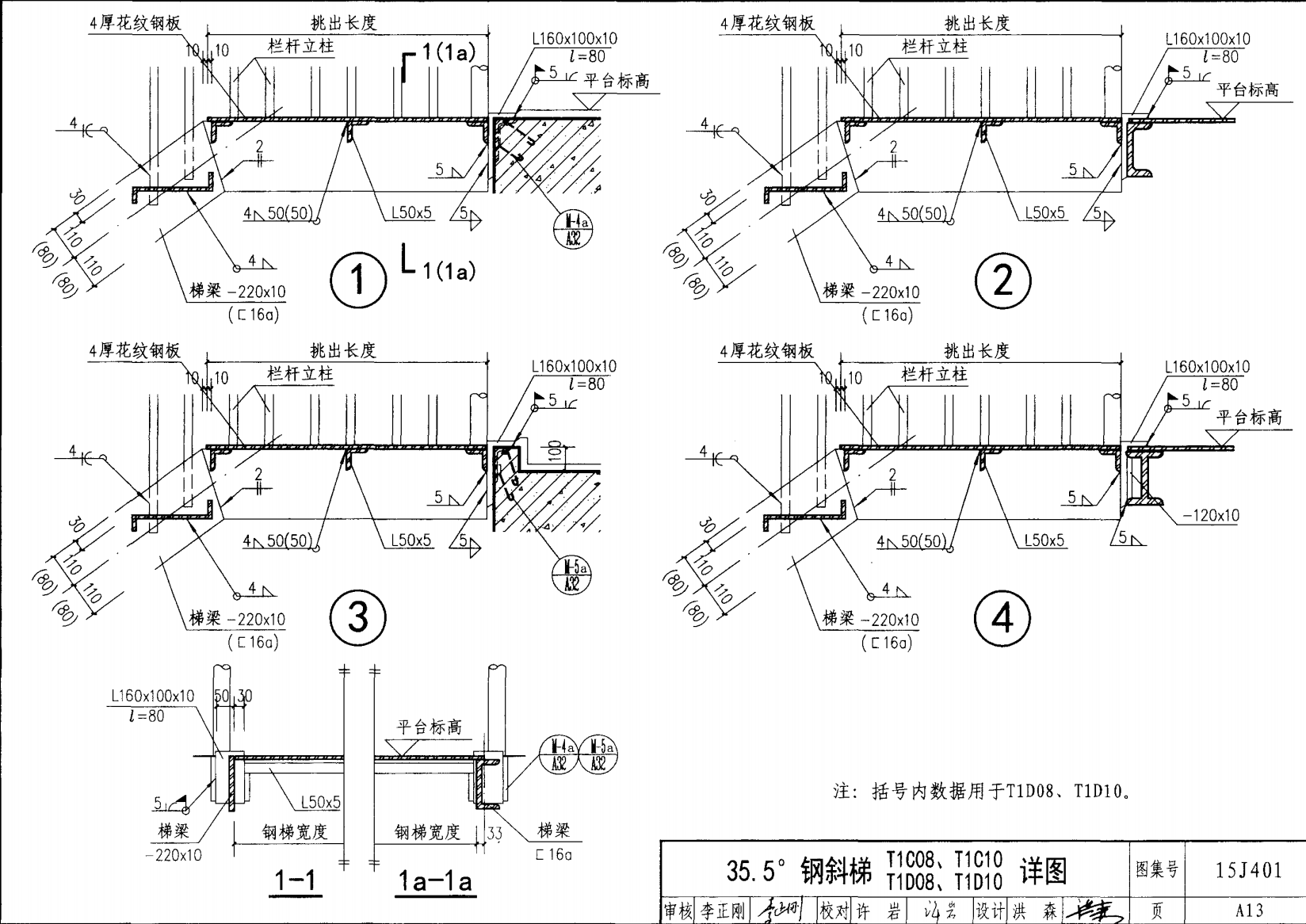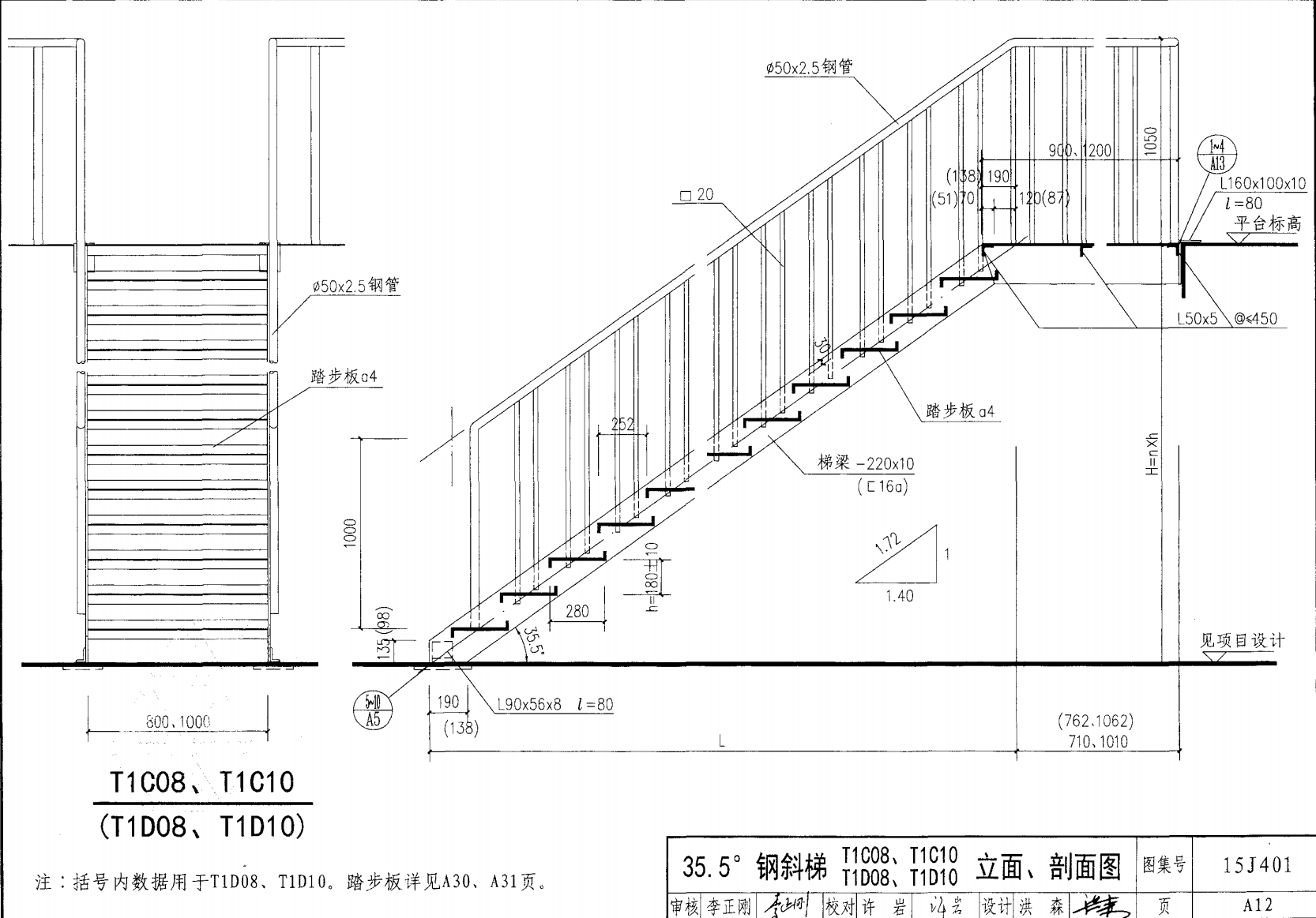 鋼斜梯D | 35.5°(1:1.4) | T1D10 | 1000 | 〔16a | 3.30 | a~c |