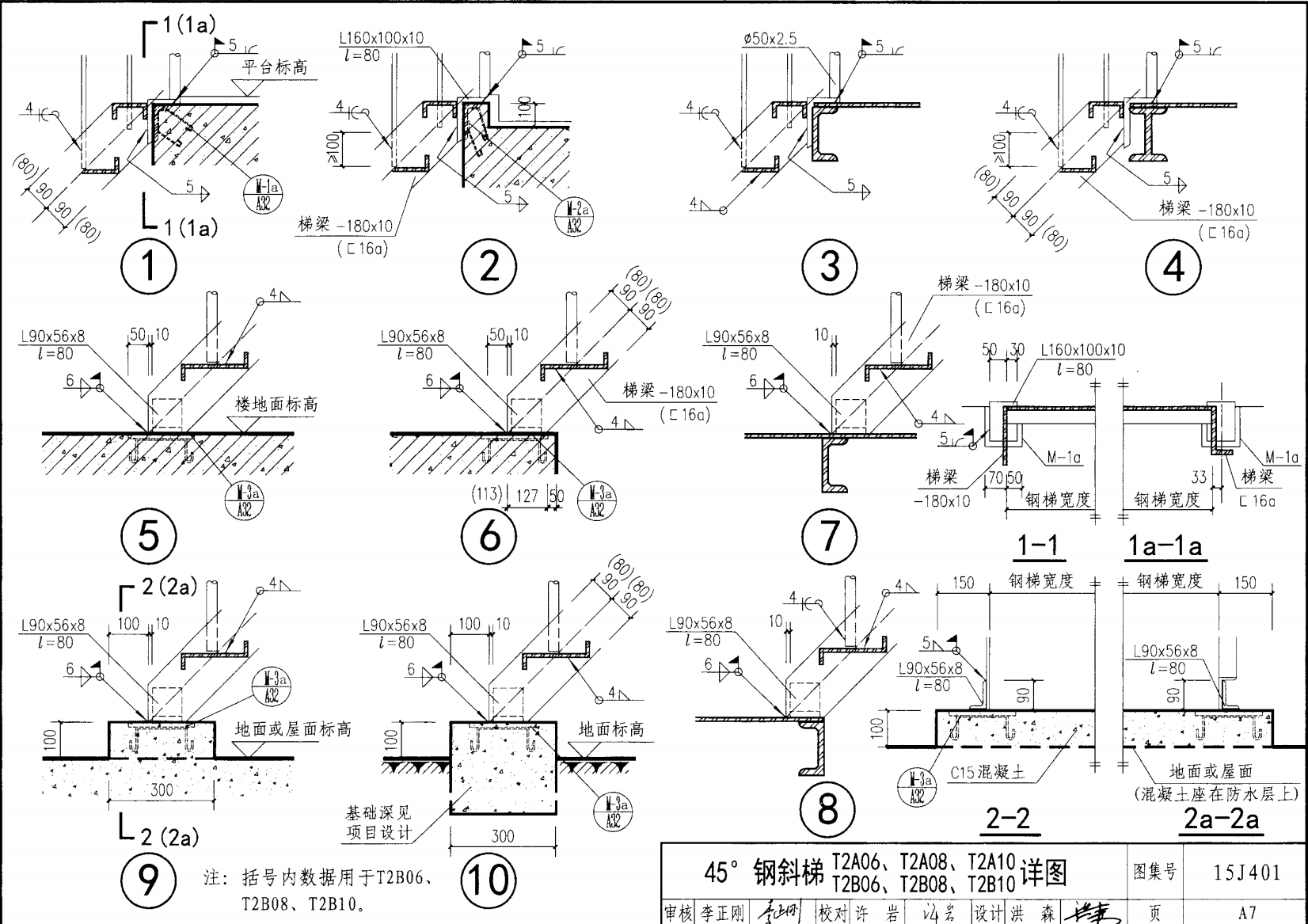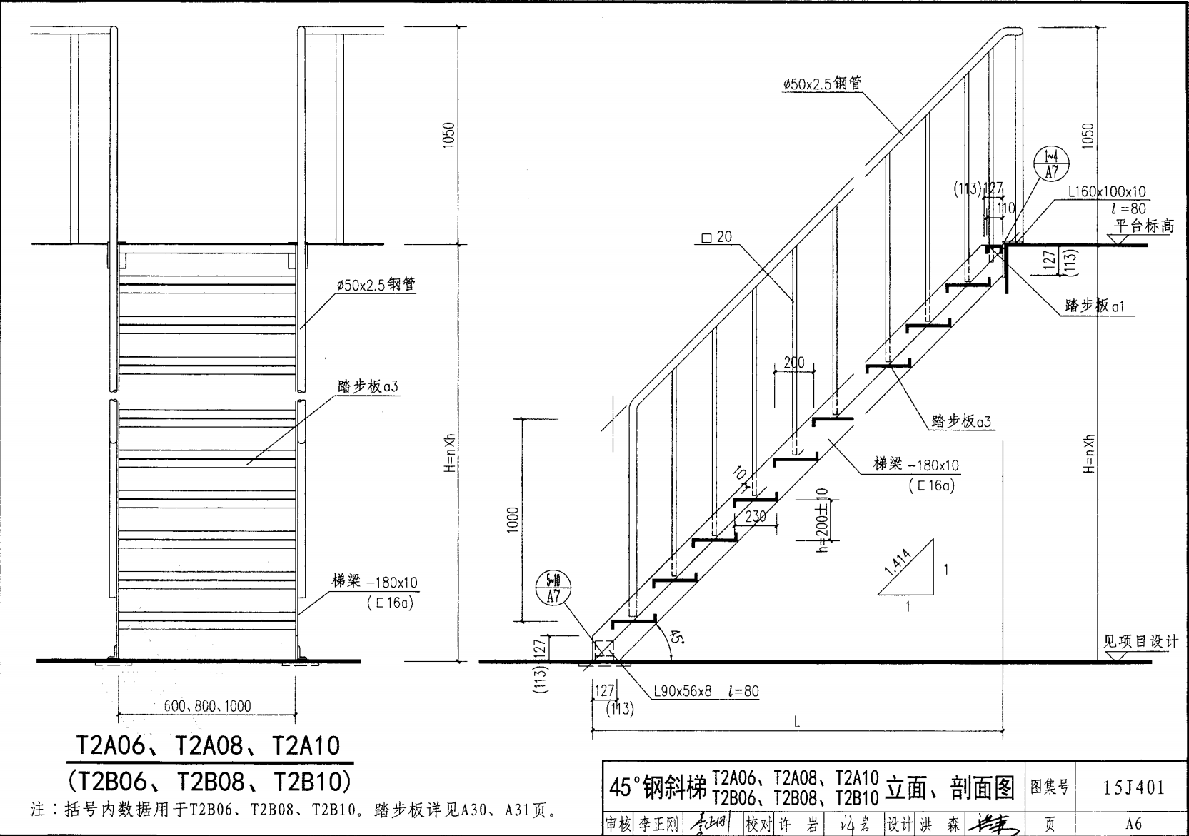 鋼斜梯A | 45°(1:1) | T2A06 | 600 | -180X10 | 4.50 | a~c |