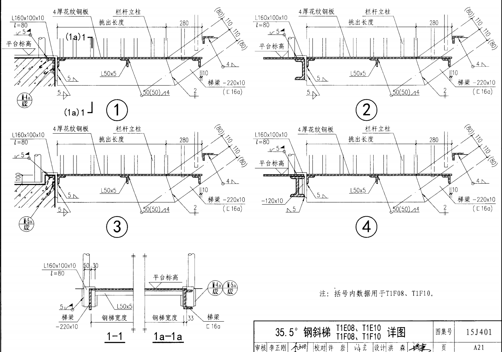 - T1F10b-3.3其中T1為斜角35.5°鋼梯,F(xiàn)槽鋼梯梁并下端帶平臺,10b梯寬1000mmb型踏步板,梯高3.3m