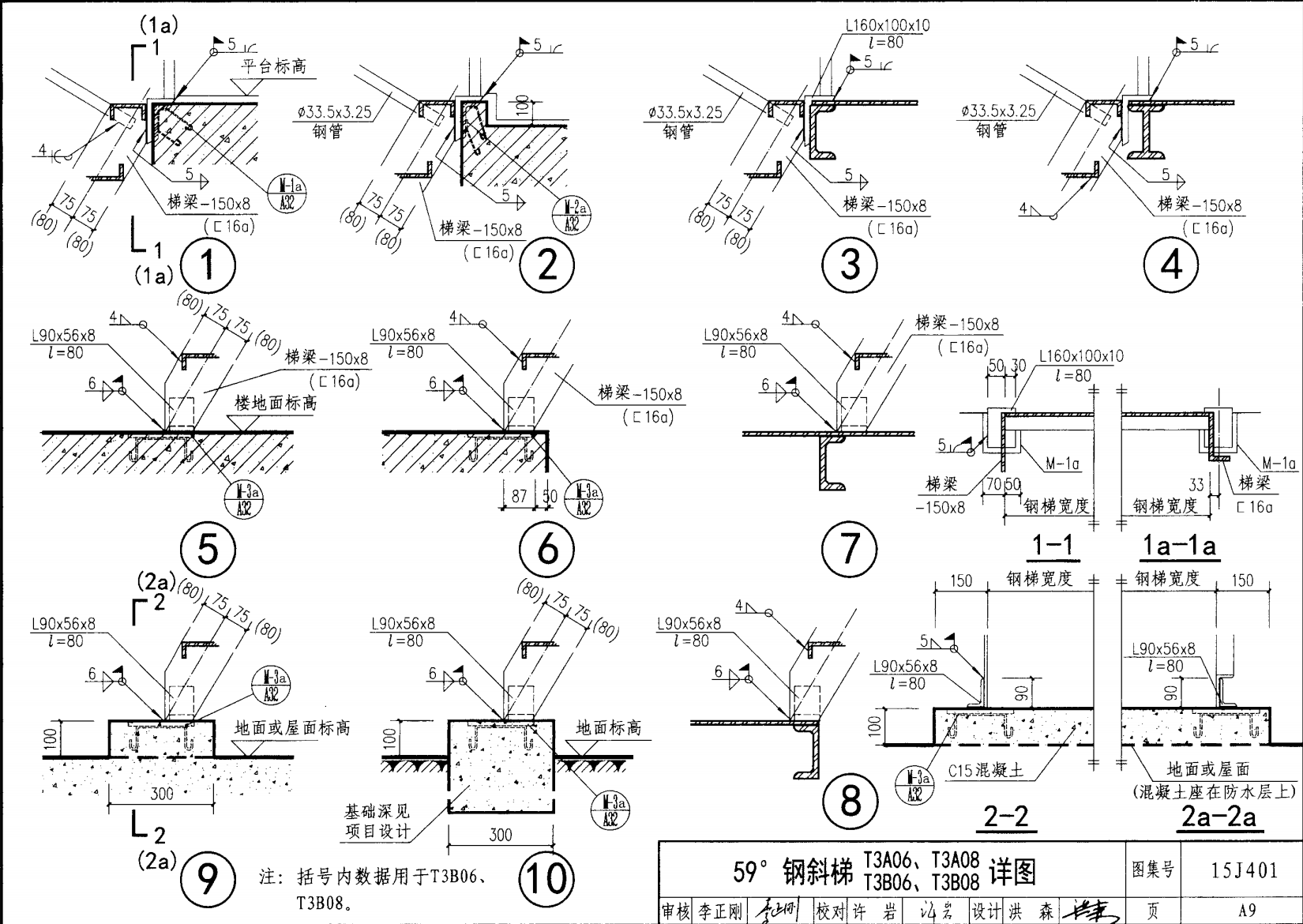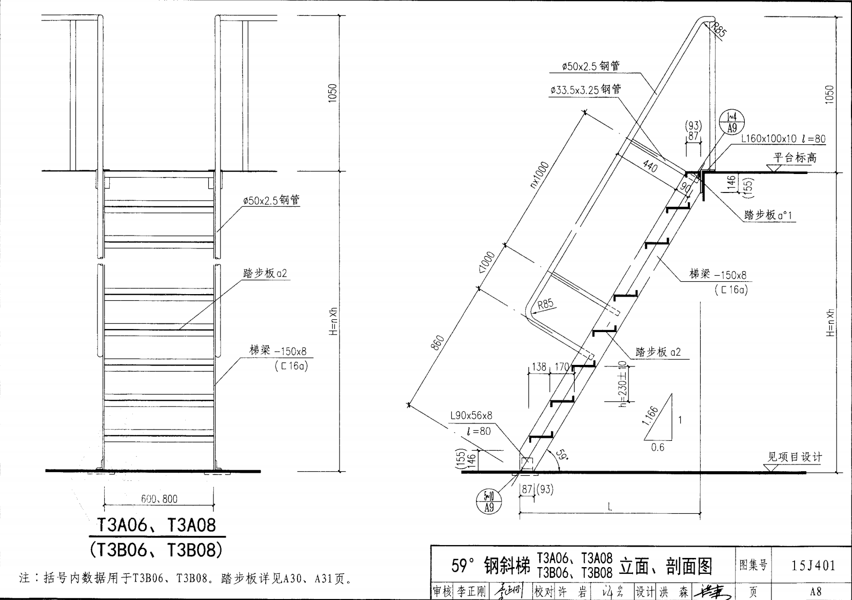 鋼斜梯A | 59°(1:0.6) | T3A08 | 800 | -150X8 | 5.10 | a~c |