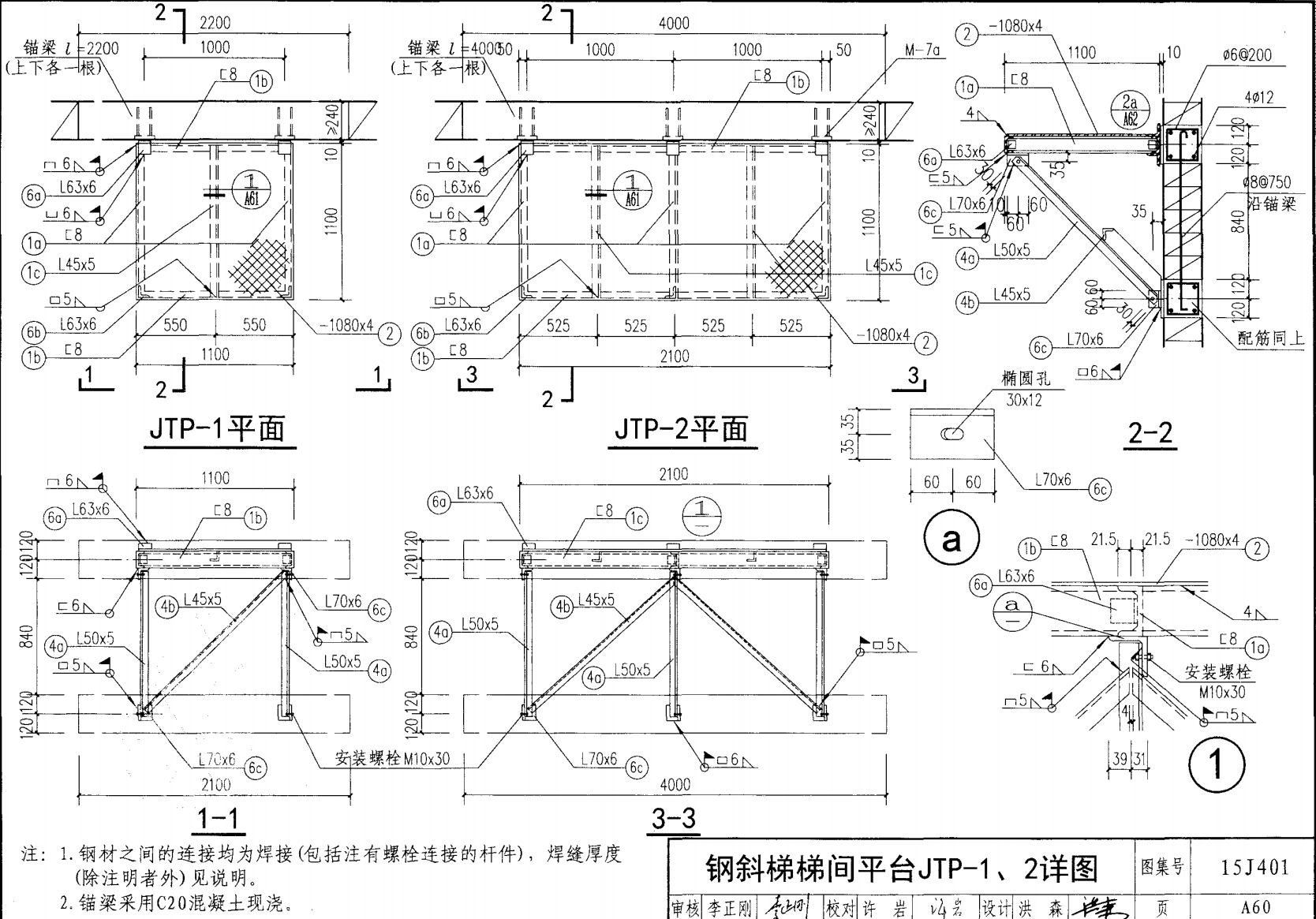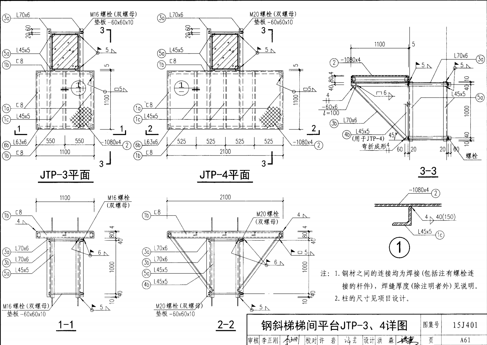 作業(yè)平臺鋼梯的欄桿扶手按鋼梯的傾角分三種情況:傾角 90°鋼直梯僅頂部設(shè)欄桿;傾角 桿扶手的中間立柱間距不大于73 。和 59° 鋼斜梯支撐欄 OOOrnrn 斜梯可以從作業(yè)平臺鋼梯欄桿中選取;傾角 45° 35. 5° 鋼斜梯的涂裝標(biāo)配熱鍍鋅 室外鋼斜梯的防雷電保護(hù)措施應(yīng)符合《建筑物防雷設(shè)計(jì) 規(guī)范》GB 50057-2010 的要求 鋼斜梯上端作業(yè)平臺分為鋼筋混凝土結(jié)構(gòu)和鋼結(jié)構(gòu)兩種。 鋼斜梯下端不帶平臺的( 親混凝土基礎(chǔ)兩種;鋼斜梯下端帶平臺的(型)分為鋼筋混凝土樓地面和 型) 分為鋼筋混凝土樓地面和鋼結(jié)構(gòu)兩種。本圖集均提供詳圖,但在鋼斜梯選用代號中不體現(xiàn),施工時可以酌情選用當(dāng)上端作業(yè)平臺有防止液體往下流淌要求時,可選用帶 有鋼筋混凝土翻邊的詳圖鋼斜梯梯間平臺有 種形式, 但在鋼斜梯選用代號中不體現(xiàn)