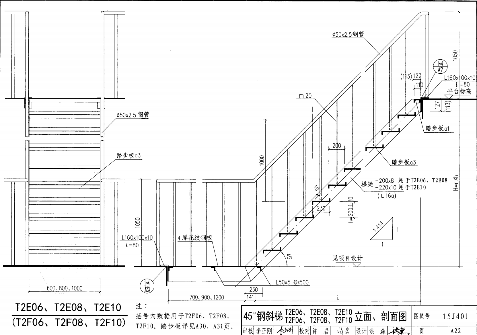 鋼斜梯A | 45°(1:1) | T2A08 | 800 | -180X10 | 4.50 | a~c |
