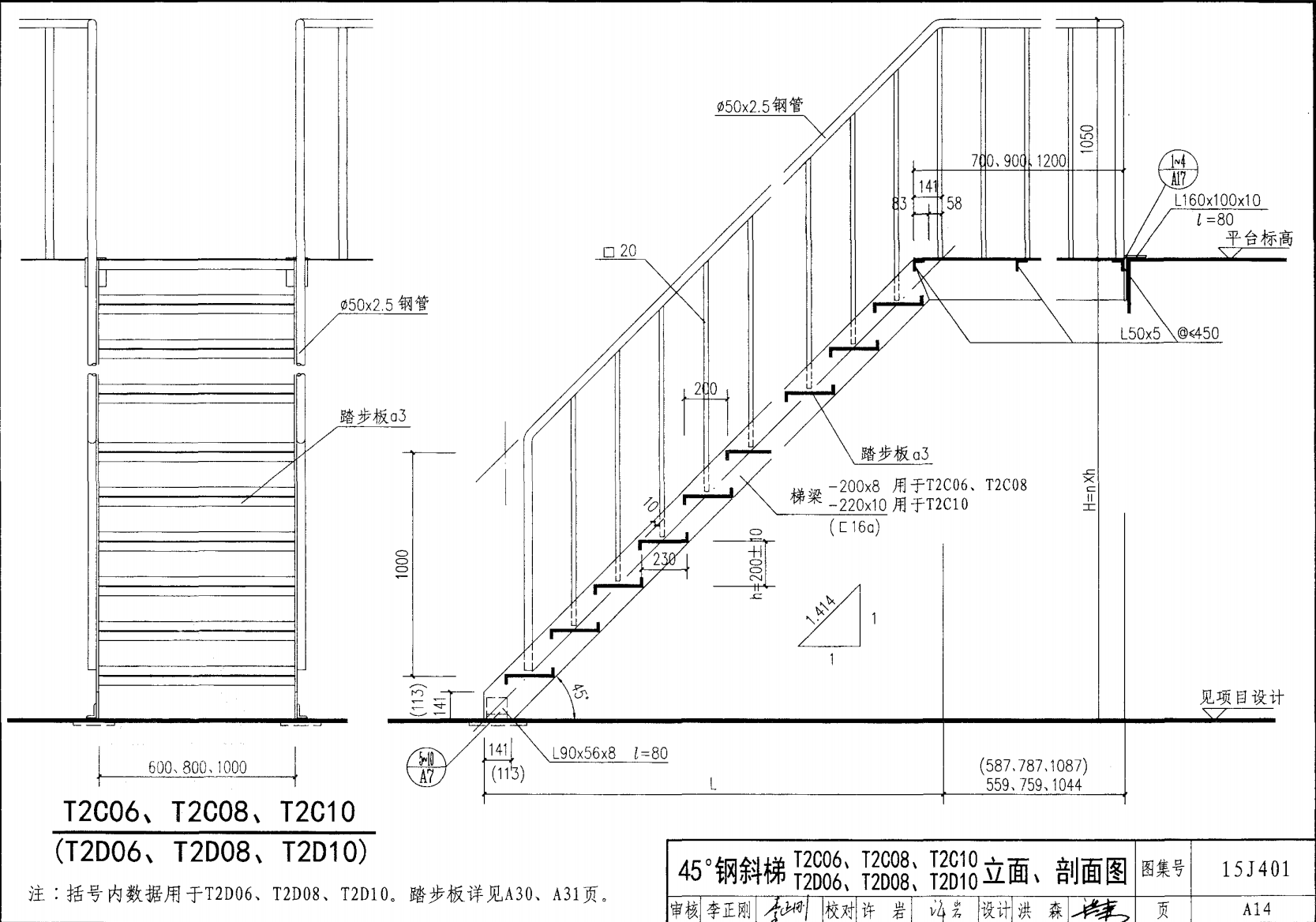 鋼斜梯D | 45°(1:1) | T2D08 | 800 | 〔16a | 4.50 | a~c |